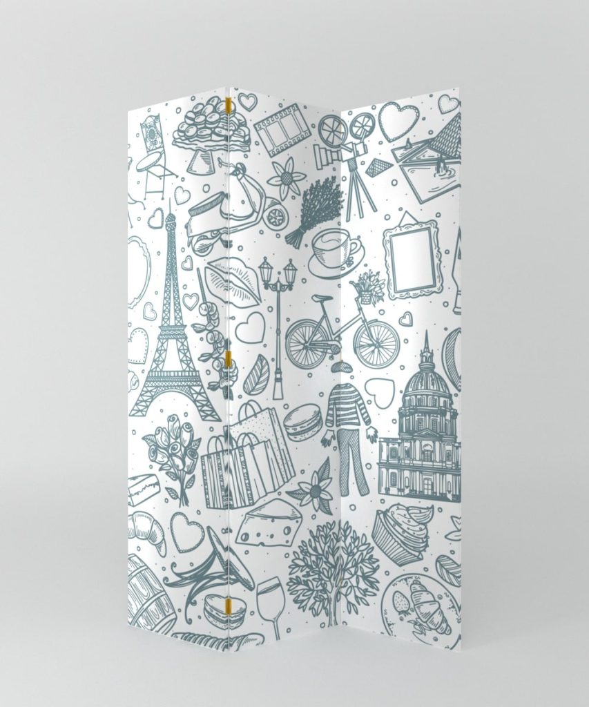 ideal para el hogar moderno. Fabricado en madera e impresa en tela a una cara, no solo lo ayudará administrar el espacio, sino que también será una decoración interior muy elegante. El Paraban plegable es mucho más que un divisor simple, puede aportar un encanto excepcional a cada interior. Sensación de privacidad y comodidad incluso en habitaciones más grandes.