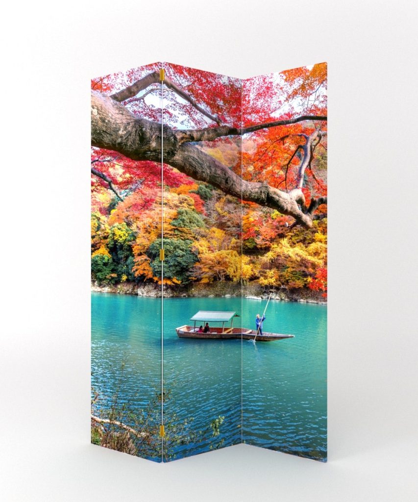 ideal para el hogar moderno. Fabricado en madera e impresa en tela a una cara, no solo lo ayudará administrar el espacio, sino que también será una decoración interior muy elegante. El Paraban plegable es mucho más que un divisor simple, puede aportar un encanto excepcional a cada interior. Sensación de privacidad y comodidad incluso en habitaciones más grandes.